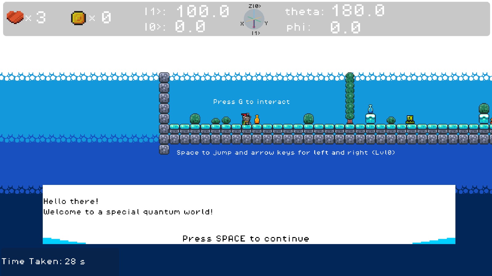 Quirky Qubits is a Quantum Platformer, a fun, physics-inspired adventure that lets you play with ideas from quantum computing while exploring this quirky world.